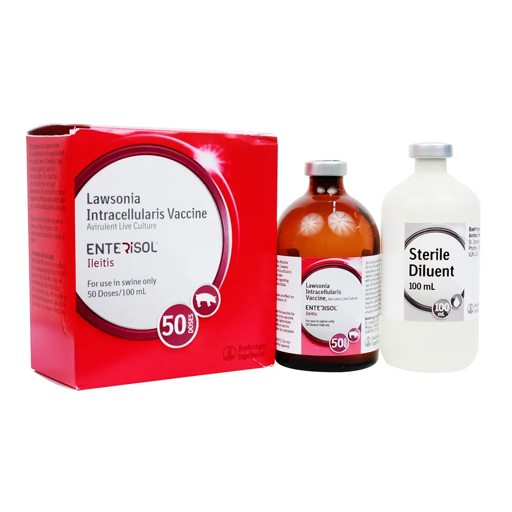 Non-frozen formula avirulent live culture for vaccination of healthy, susceptible swine, 3 weeks of age or older, as an aid in the prevention and control of Porcine proliferative enteropathy (Ileitis) caused by Lawsonia intracellularis. Significantly reduces gross and microscopic intestinal lesions of ileitis, and colonization by Lawsonia intracellularis following challenge with virulent microorganism. Protective immunity lasts for at least 7 weeks.