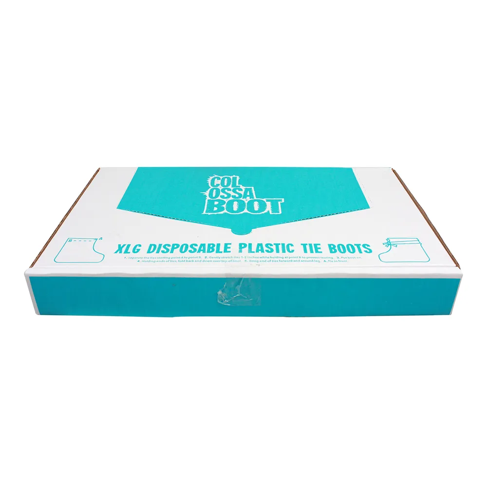 Disposable, heavy-duty, X-large boots with tie-top feature a textured bottom for anti-slip protection. Great part of farm’s biosecurity program for visitors, truck drivers, feed delivery, vets and more. Durable, strong seams do not split. Fit men’s shoe size up to 13. 22″H.