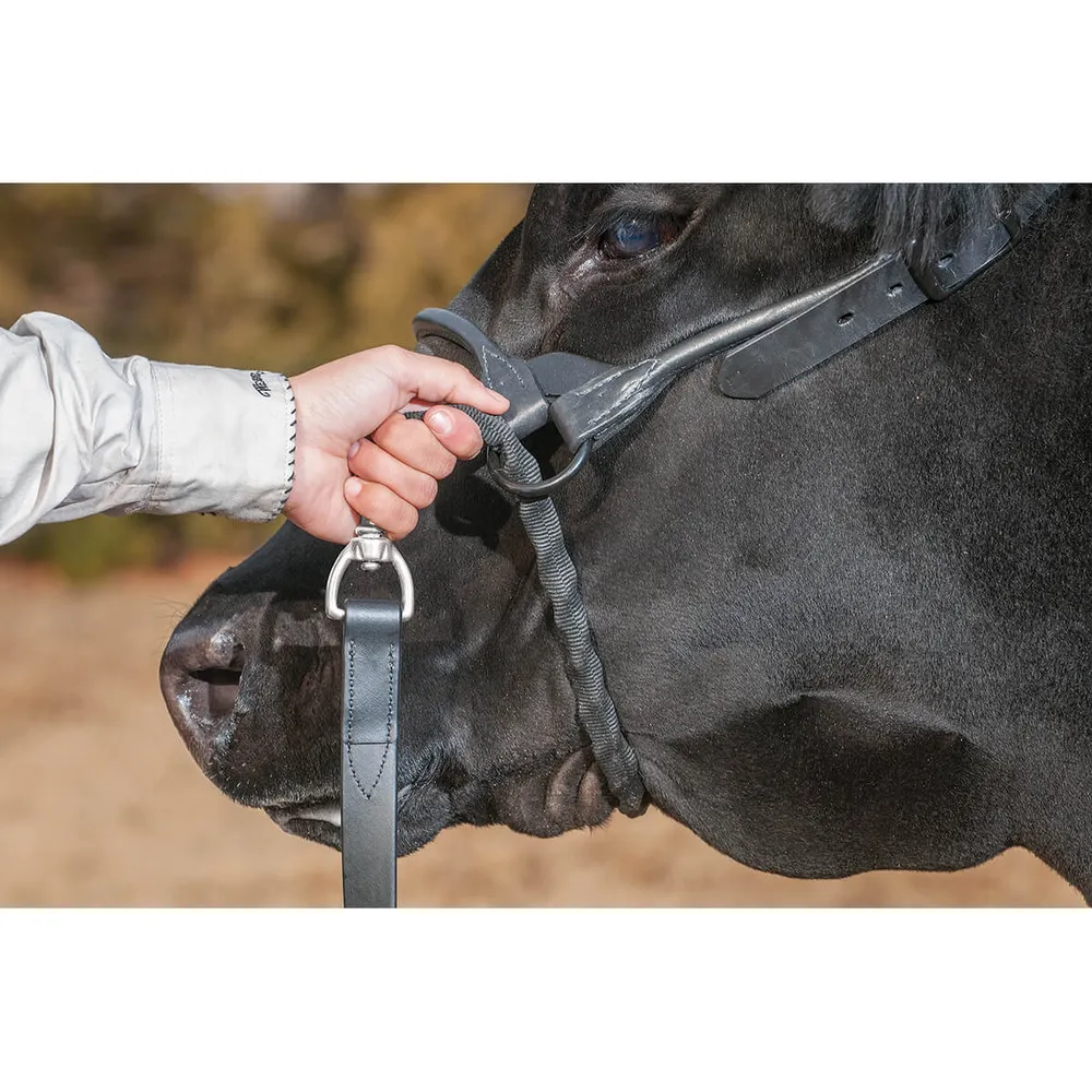 Ideal for animals sensitive to the sounds and feel of chain as it slides through the halter. Features durable, non-sticky, heat-sealed polymer blend covering on traditional lead chain. Won’t become tacky or gummy. Sealed rubber ends help prevent material from slipping and ends from fraying. 20″ chain and 36″ black leather lead.