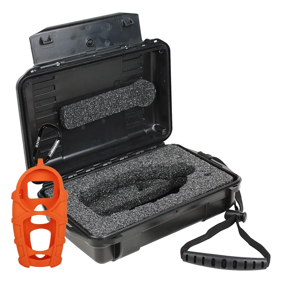 Custom contoured bumpers provide a soft, firm grip and additional shock protection. Easily slides over refractometer; no need to remove before use. Tear- and chemical- resistant. Features hole for included carabiner. Virtually indestructible Proof Case provides additional level of protection in demanding environments. Fitted foam insert cushions refractometer. Two heavy-duty latches secure lid against integral O-ring, providing waterproof seal to 100 feet under water.Â