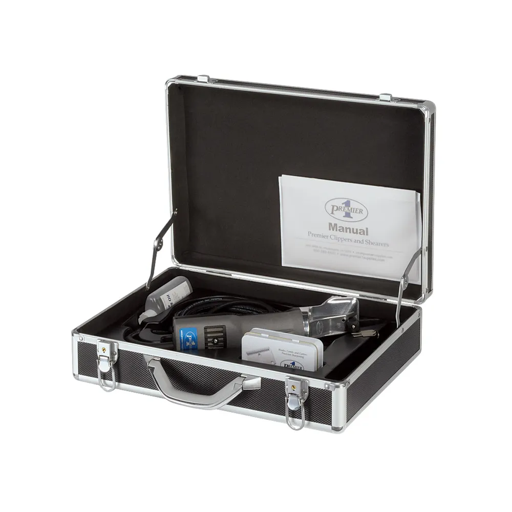 Kit includes Premier 4000C Clipper with 16 ft. cord, Fine Blade set, 4 oz oil and manual packaged in a heavy-duty case.