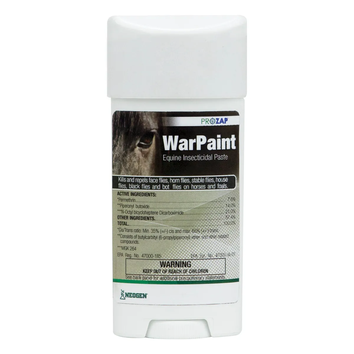 Easy-to-apply, odor-free insecticidal paste for horses kills and repels face, horn, stable, house, black and bot flies. Provides waterproof protection in just 2 hrs.Â