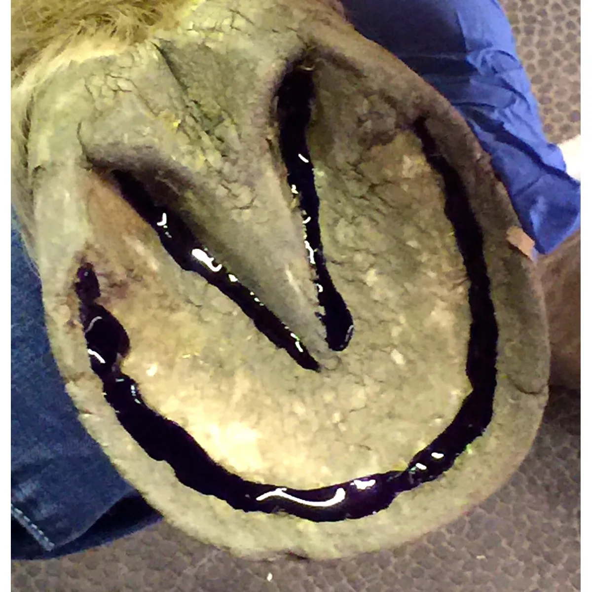 Powerful extra-strength gel formula dispensed from a squeeze bottle with a long flexible-tip applicator cap. Tip allows for the exact placement of gel along the horn rim and frog with no messy waste or run-off. Gel contains special medical dye that stains diseased hoof tissue and shows where to add more gel as the blue color fades. Use on nail holes, cracks and defects. Apply along horn rim, deep into the sulcus, under shoes and pads.