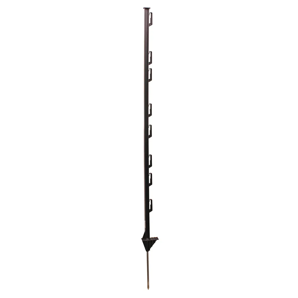 Molded of UV resistant polyolefin. 8 wire holders for steel wire, poly wire or tape. 48″ tall.Â