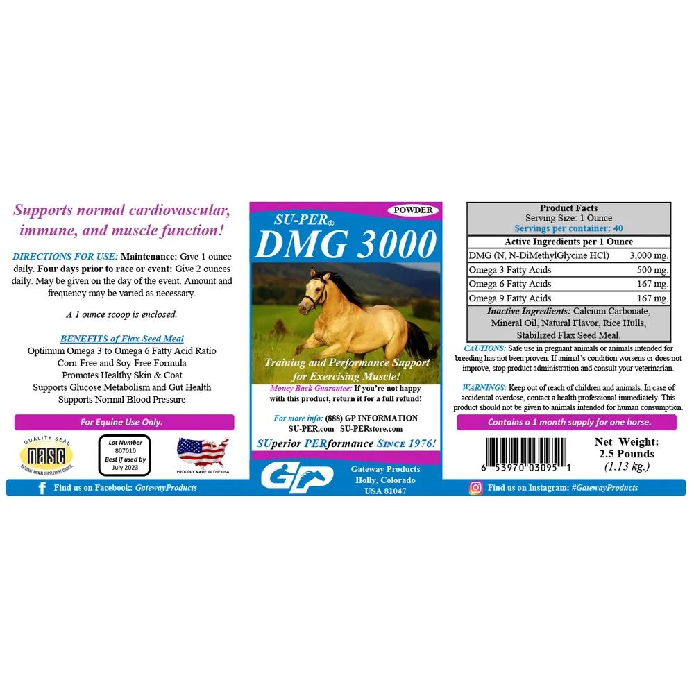 Helps support normal cardiovascular, immune and muscle function. Helps give a boostto stamina and energy, as well as lessen recovery times for horses involved in intense training or competition. DMG is also known for its ability to improve normal immune response and cardiovascular function, making it a great choice for older horses, those in recovery from illness, or those with poor immune function in general. Proven to increase oxygen uptake in the bloodstream, delay fatigue, and allows for more efficient utilization of oxygen. Particularly helpful to performance horses in reducing lactic acid buildup. Also been shown to help normalize fat and carbohydrate metabolism. As an immune booster, it enhances B and T cell function, as well as regulate immune responses to keep inflammation at proper levels. Liquid is a water base and cherry flavor; Powder is a rice hull base and apple flavor. Â